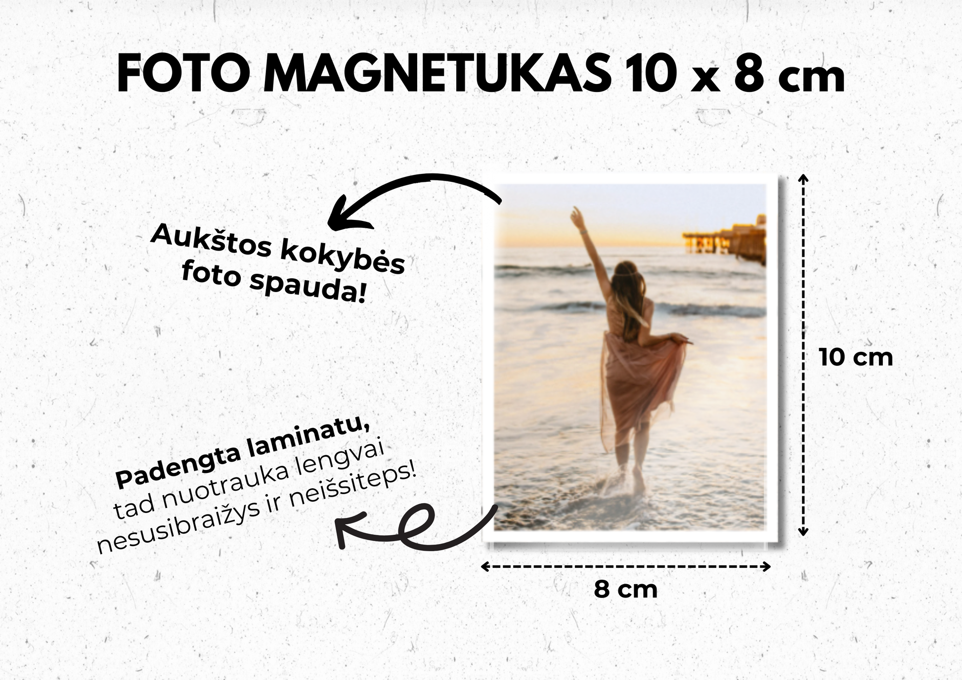 Foto magnetukai – tai personalizuoti magnetai su tavo pasirinktomis nuotraukomis. Nesvarbu, ar tai šeimos akimirkos, vaikų šypsenos, atostogų vaizdai ar net mylimo augintinio portretas – šie magnetukai padės jiems visada būti šalia.