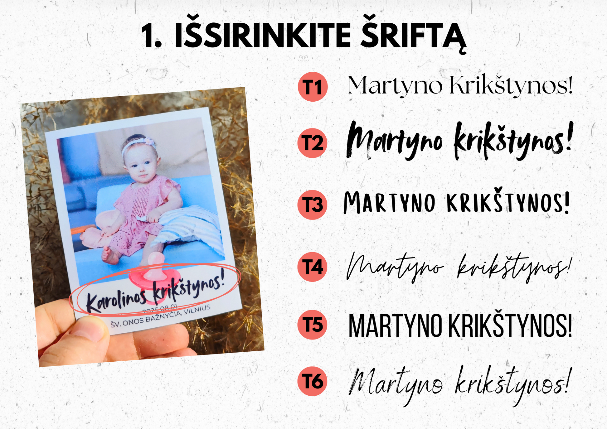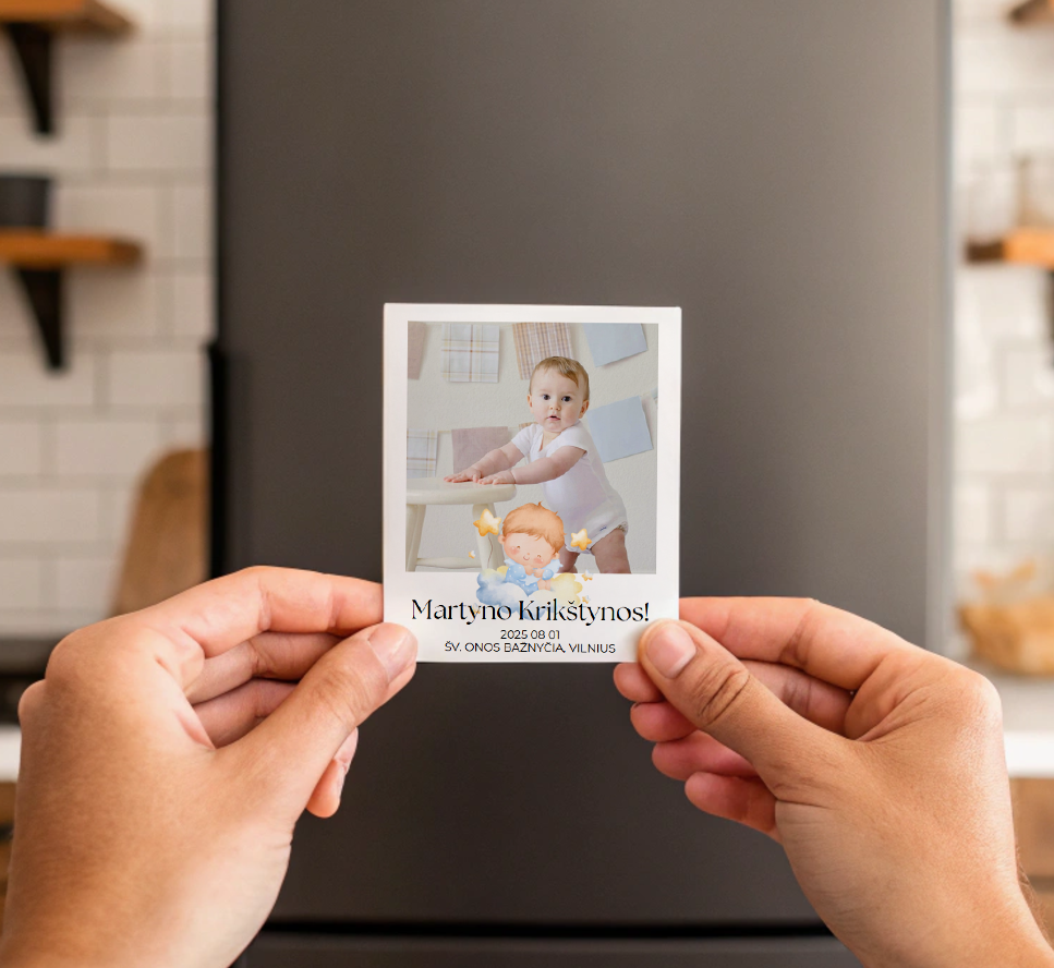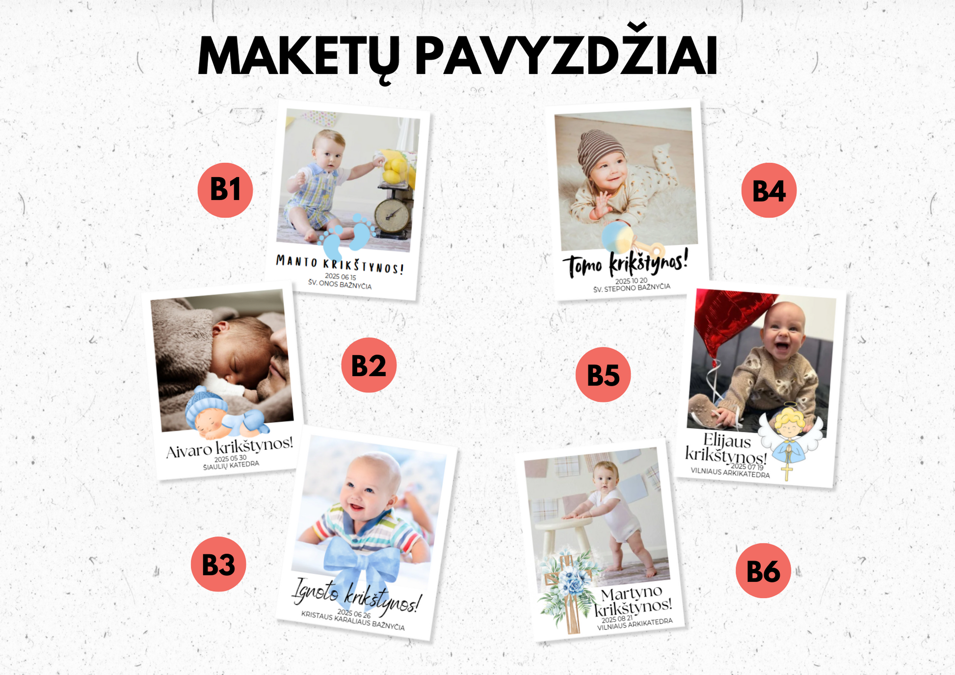 Galite pasirinkti kūdikio nuotrauką, vardą, datą ar trumpą palinkėjimą ✨ – ir mes sukursime individualų dizainą, kuris nudžiugins tiek svečius, tiek artimuosius.